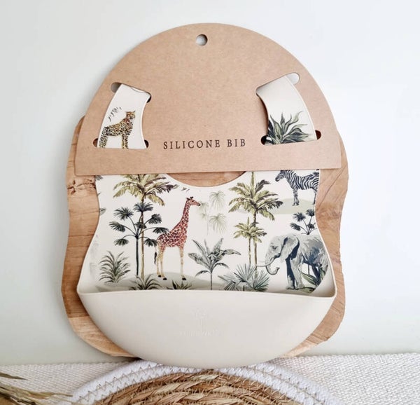 Siliconen slabber met opvangbakje jungle - beige